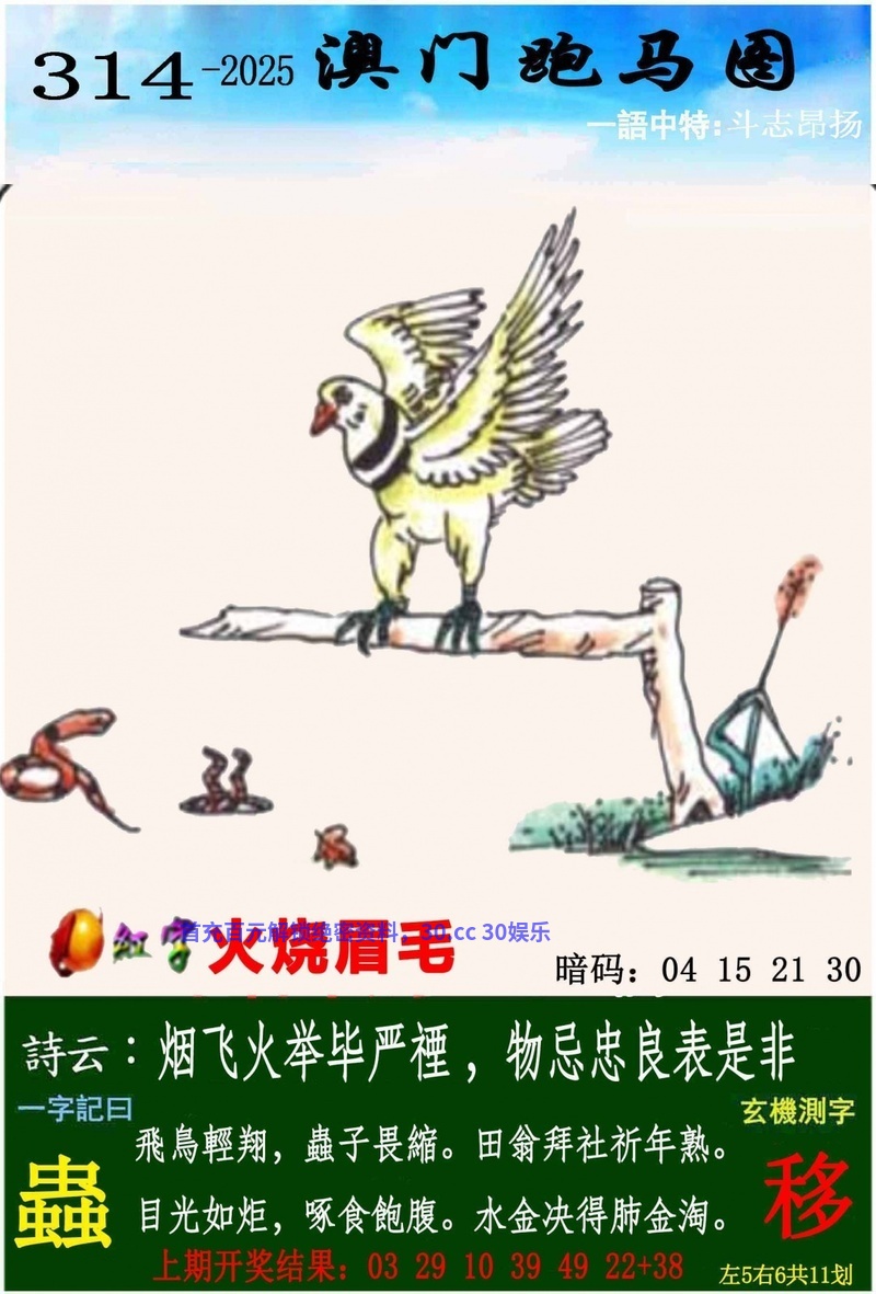 315期一字記曰:【發】 更新中 解:更新中 综合取肖:更新中 |